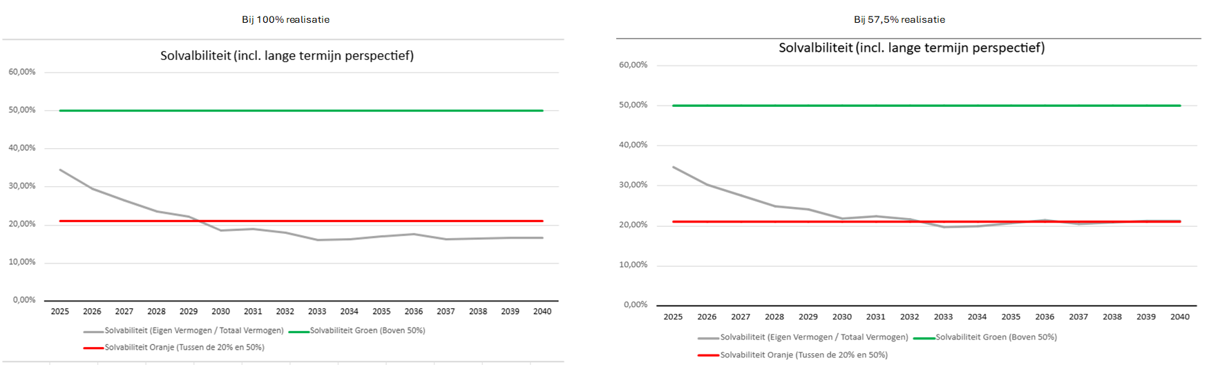 Figuur 6 Indicator Solvabiliteit bij bij 100% realisatie (links) en bij 57,5% realisatie (rechts)