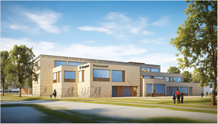 Als gevolg van de woningbouw in het zuidoostelijk deel van Hoofddorp is er een nieuwe school nodig. In de nieuwe wijk Nassaupark realiseren we in één gebouw een Integraal Kindcentrum (IKC): IKC Buitenplaats Nassaupark. Dit IKC bestaat uit een school, een ruimte voor kinderopvang en een geïntegreerde gymzaal. De nieuwbouw bestaat uit 2.213 m2 school, 455 m2 gymzaal en 438 m2 kinderopvang.
